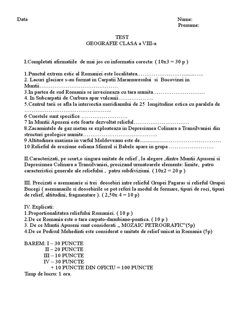 Test Recapitulare Relief Viii