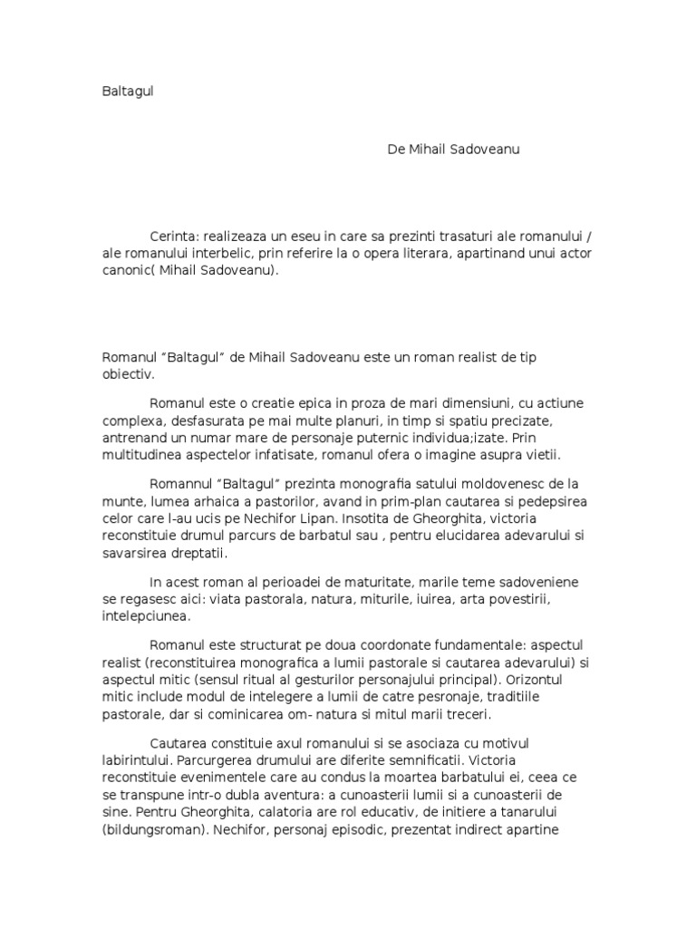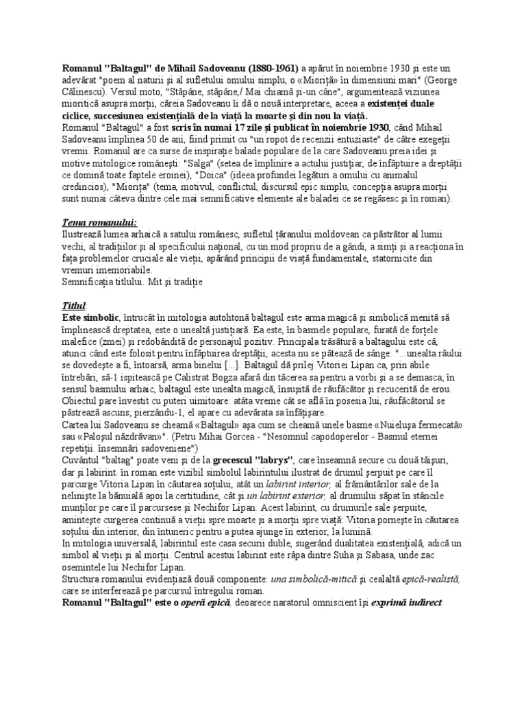 Doc Baltagul De Mihail Sadoveanu Tema și Viziunea Relatia Dintre Personaje Andreea Elena Academia Edu