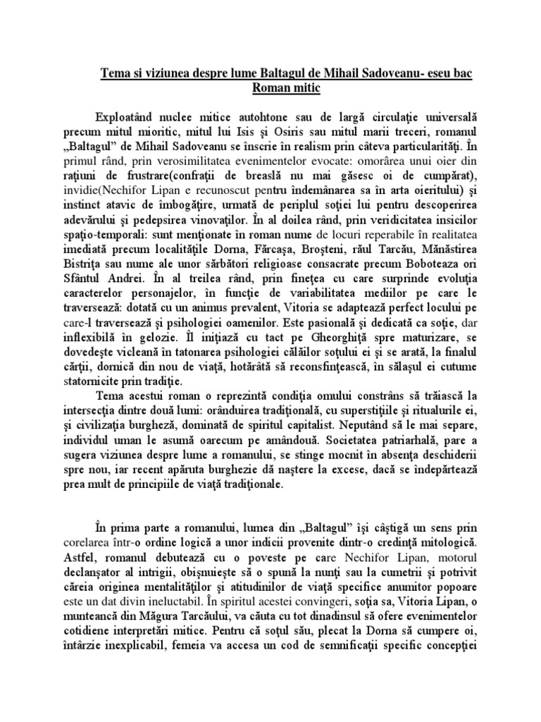Tema Si Viziunea Despre Lume Baltagul De Mihail Sadoveanu Roman Mitic