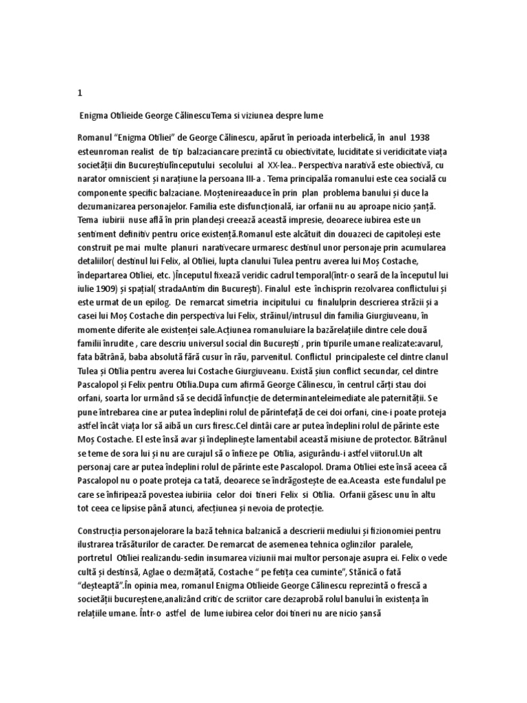 Doc Tema Si Viziunea Despre Lume In Enigma Otiliei Razvan Gabriel Academia Edu