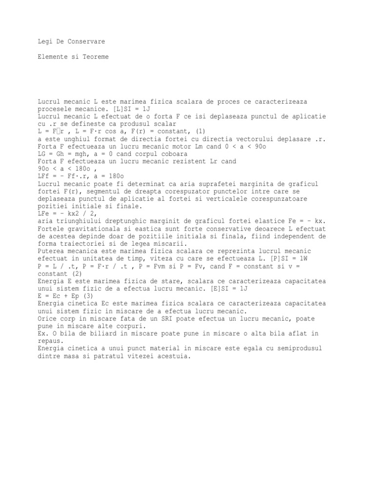 Legi De Conservare Elemente Si Teoreme