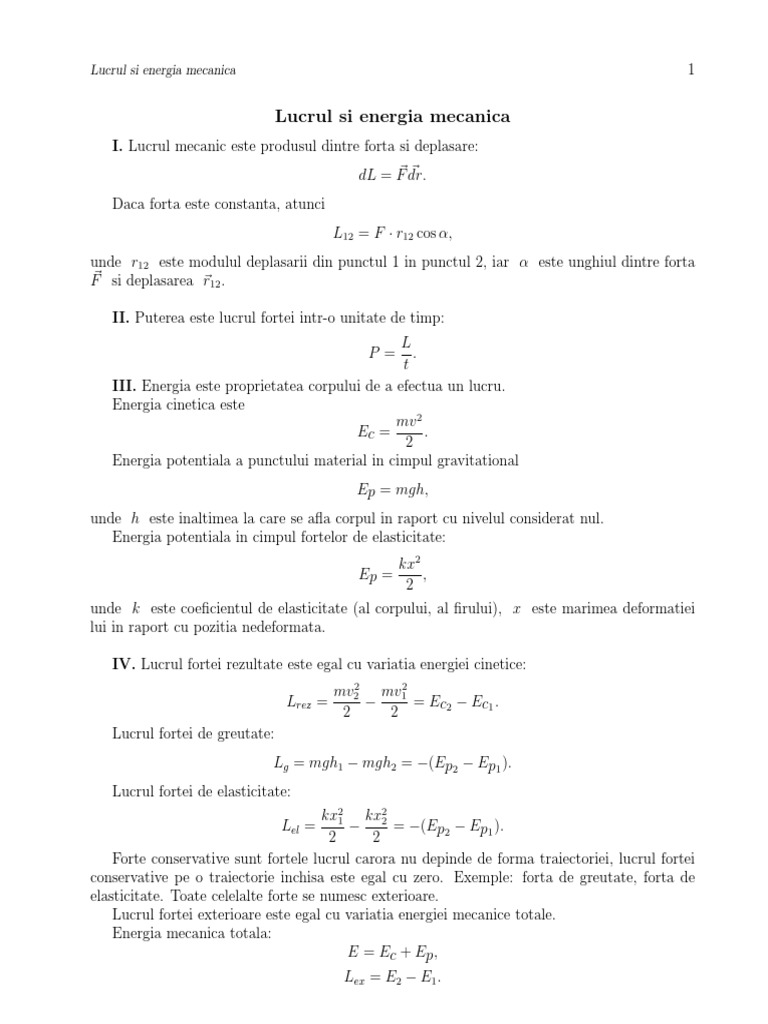 Formule Online Probleme Si Exercitii Rezolvate Teorema Variatiei Energiei Cinetice A Punctului Material