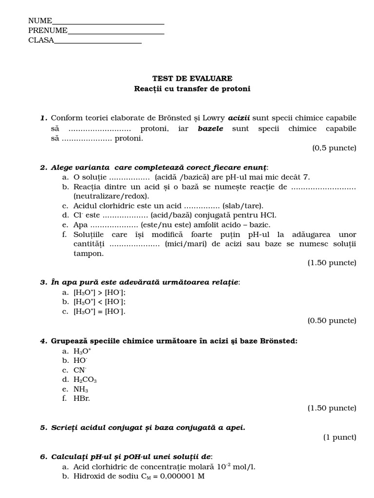 Test Chimie Cls Ix Fr Sem Ii Acizi Si Baze 1