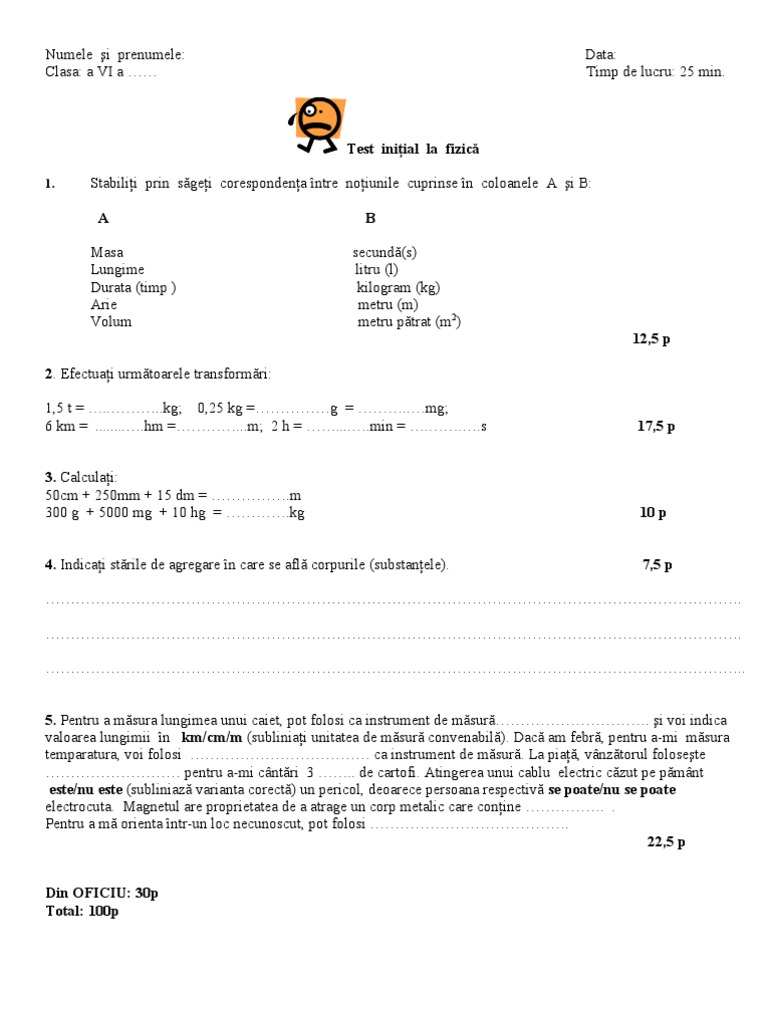 Doc Test Initial Fizica Cls Vi Nina Stan Academia Edu