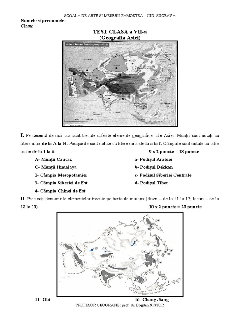 Test De Evaluare A Cunostintelor Geografie Clasa A X A