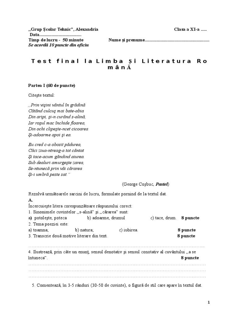 23 septembrie 2011 13 44. Verde predare normală cu prezența tuturor elevilor la școală. Test iniţial clasa a 9 a barem.