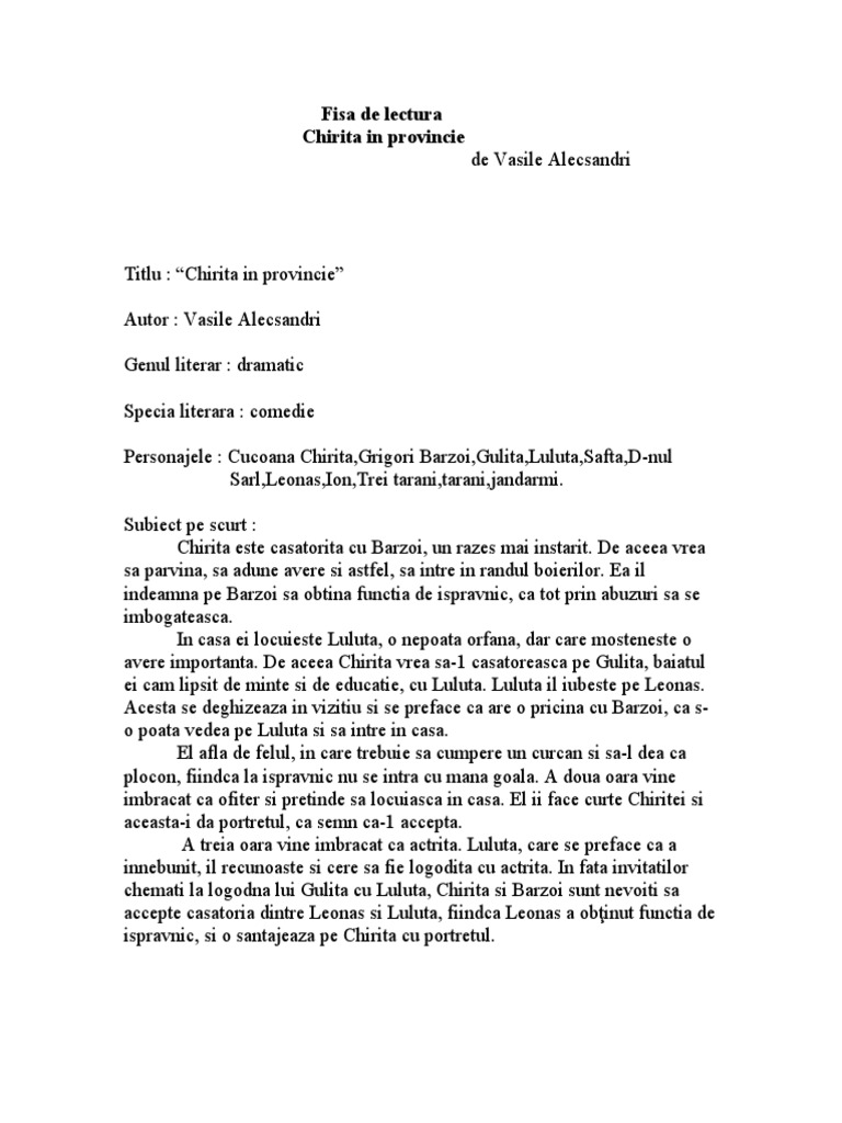 Chiriţa In Iasi Vasile Alecsandri Pdf