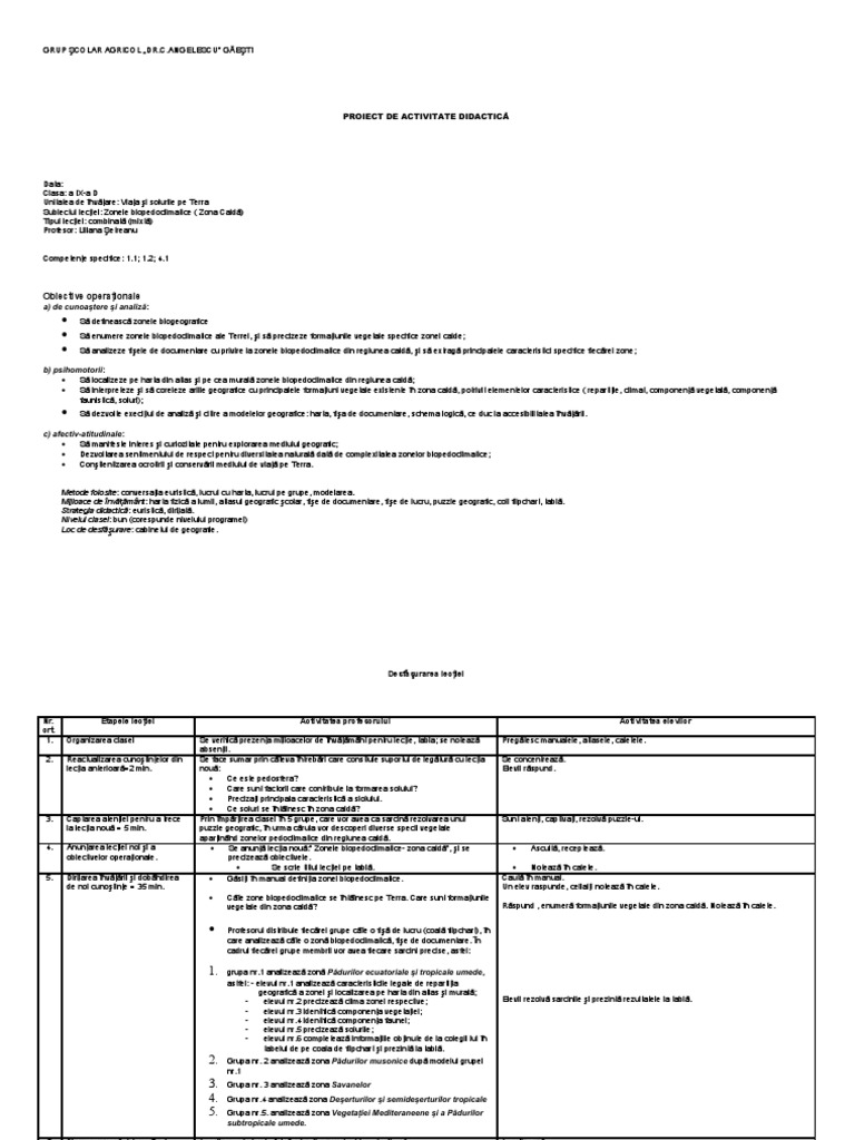 Proiect Didactic Zonele Biopedoclimatice Z Calda